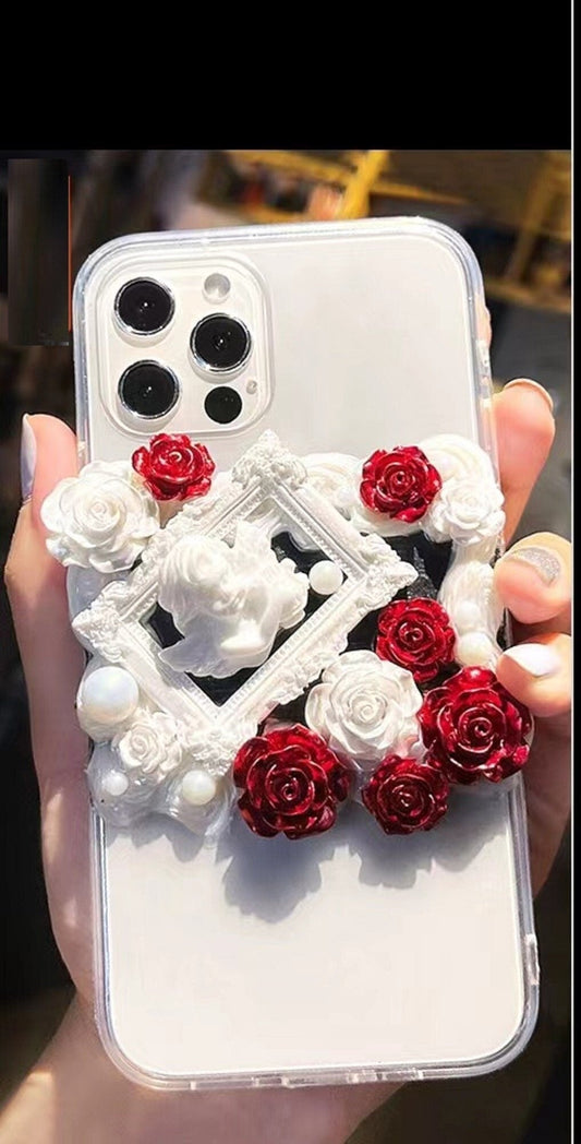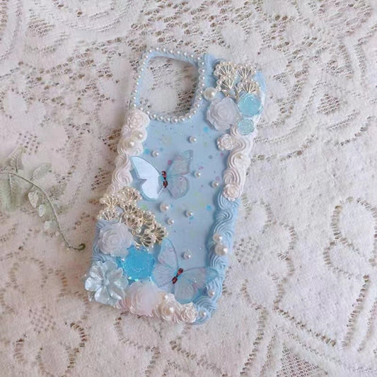 Finished Handmade Decoden Phone Cases | Pearl Flowers Roses Butterflies Pearls Charms | Samsung Android iPhone Cases