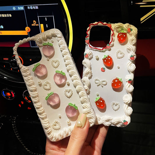 Finished Handmade Decoden Phone Cases | Kawaii Rabbit Bow Strawberry Peach Fruits Ice Cream Pearls Bows Charms | Samsung Android iPhone Cases