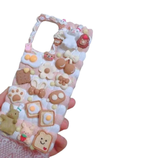 Finished Handmade Decoden Phone Cases | Kawaii Rabbit Eggs Cat Sleeping On Toast Cookies Food Flowers Charms | Samsung Android iPhone Cases