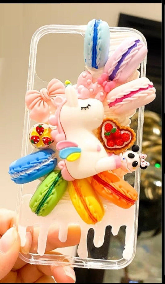 Finished Handmade Decoden Phone Cases | Kawaii Rainbow Unicorn Rabbits Macaroons Cookies Bows Hearts Charms | Samsung Android iPhone Cases