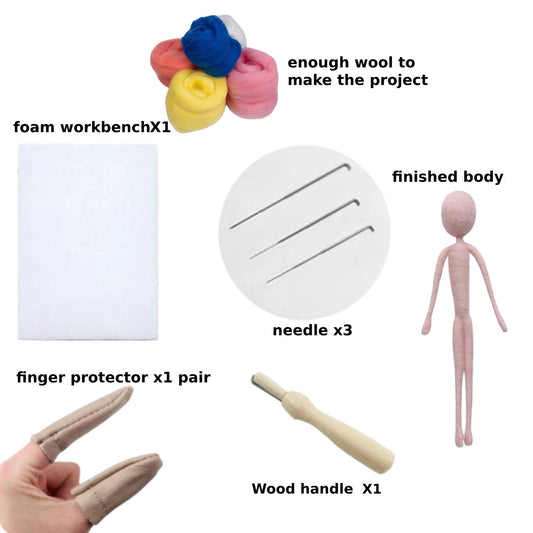 Needle Felting Kit | Flower Dress Fairy Playing Whimsical Musical Instrument | Beginner Kit Includes Wool & Tools